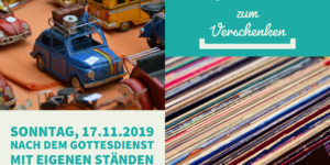 Am Sonntag, dem 17.11.2019 findet nach dem Gottesdienst unser Verschenke-Flohmarkt statt. Also, bringt mit, was ihr nicht mehr braucht, aber zu schade zum wegwerfen ist und macht jemand anderem damit …